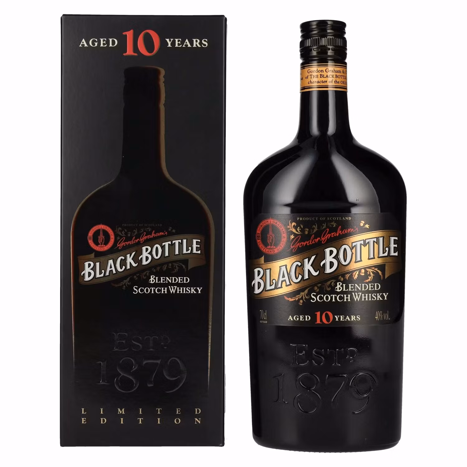 Black Bottle 10 Years Old Blended Scotch Whisky 40% Vol. 0,7l in Giftbox Skottland I lager. Artikelnummer: 680430 Dela Information Skottland