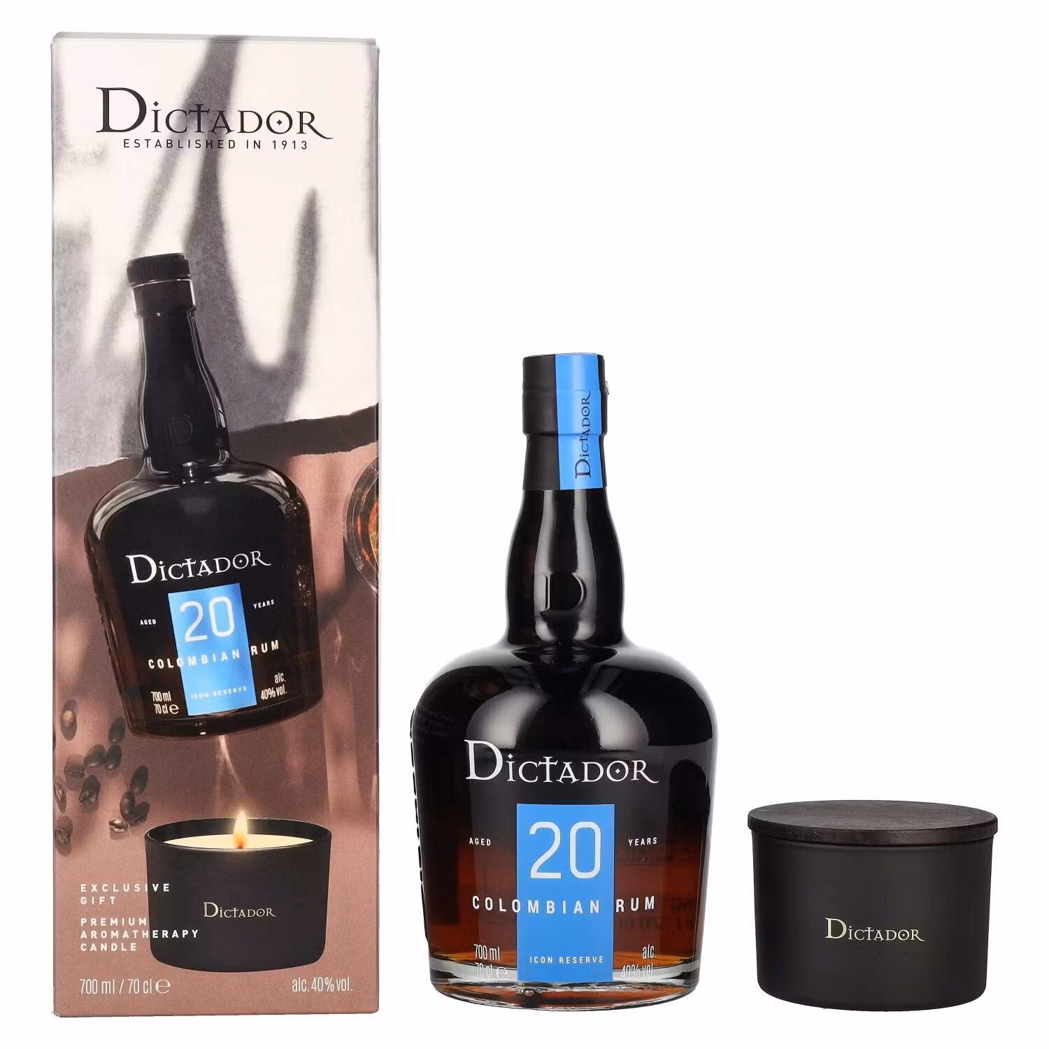 Dictador 20 Years Old ICON RESERVE 40% Vol. 0,7l in Giftbox with Kerze Colombia I lager. Artikelnummer: 606398 Dela Information Colombia