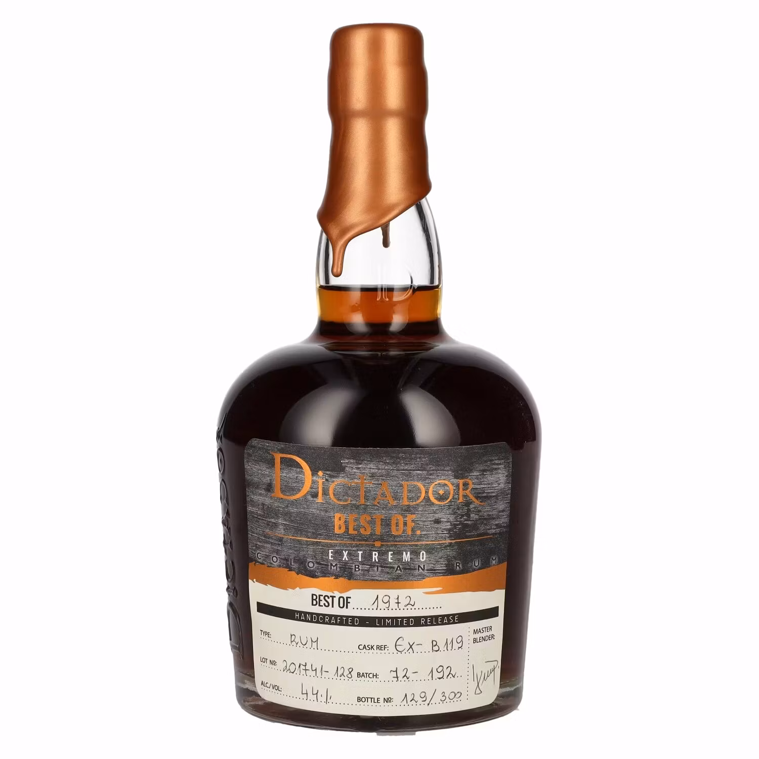 Dictador BEST OF 1972 EXTREMO Colombian Rum Limited Release 44% Vol. 0,7l Colombia I lager. Artikelnummer: 606138-X Dela Information Colombia
