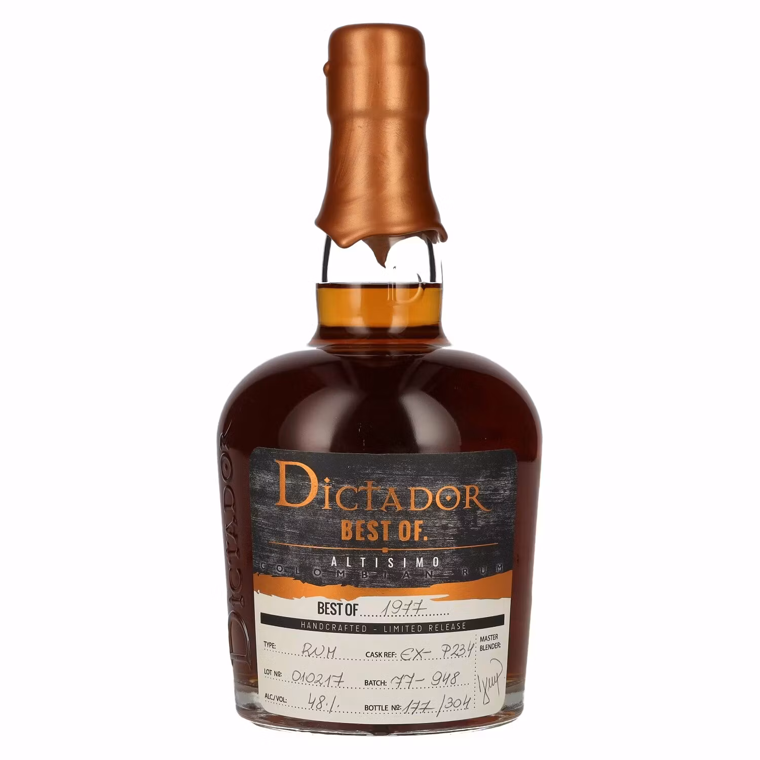 Dictador BEST OF 1977 ALTISIMO Colombian Rum 40YO/010217/EX-P234 48% Vol. 0,7l Colombia I lager. Artikelnummer: 606131-X Dela Information Colombia
