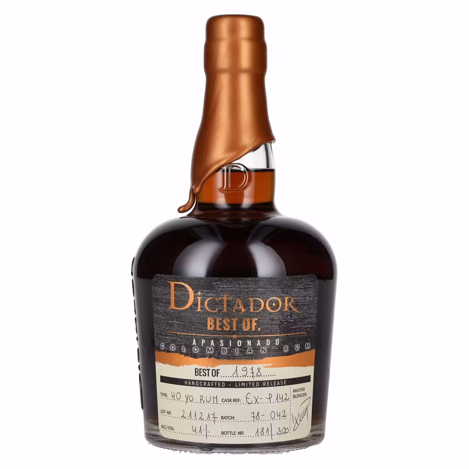 Dictador BEST OF 1978 APASIONADO Colombian Rum 40YO/211217/EX-P142 41% Vol. 0,7l Colombia I lager. Artikelnummer: 606143-X Dela Information Colombia