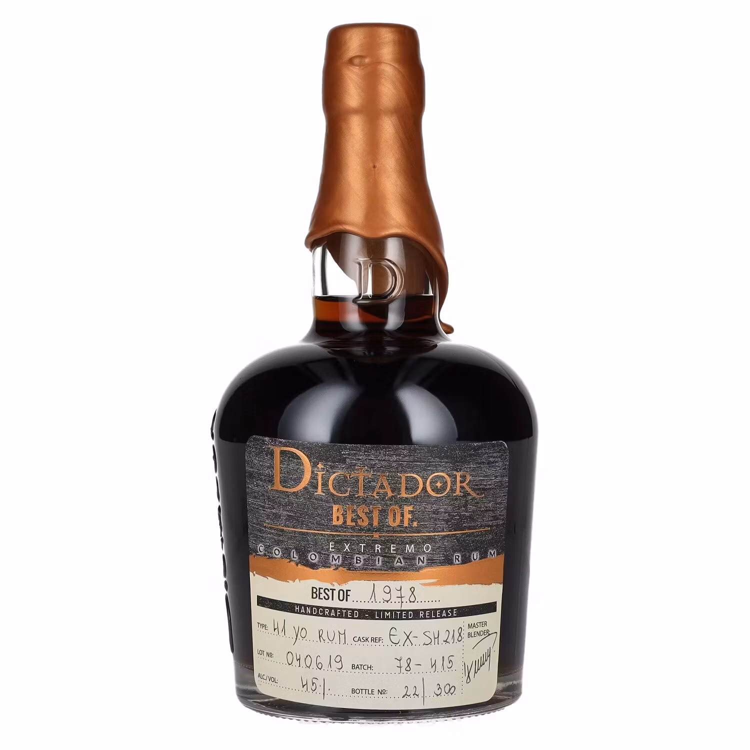 Dictador BEST OF 1978 EXTREMO Colombian Rum 41YO/040619/EX-SM218 45% Vol. 0,7l Colombia I lager. Artikelnummer: 606348-X Dela Information Colombia