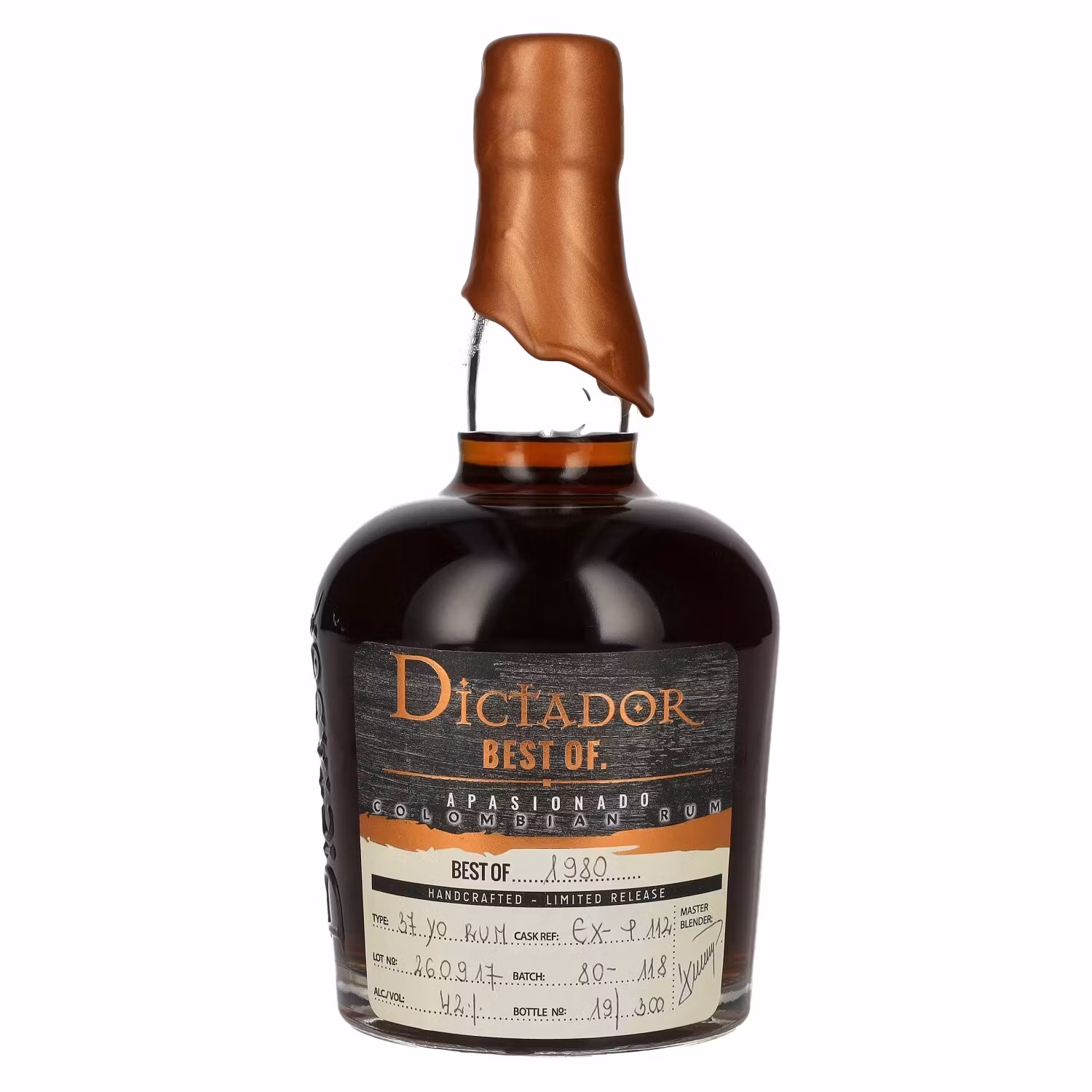 Dictador BEST OF 1980 APASIONADO Colombian Rum 37YO/260917/EX-P112 42% Vol. 0,7l Colombia I lager. Artikelnummer: 606142-02-X Dela Information Colombia
