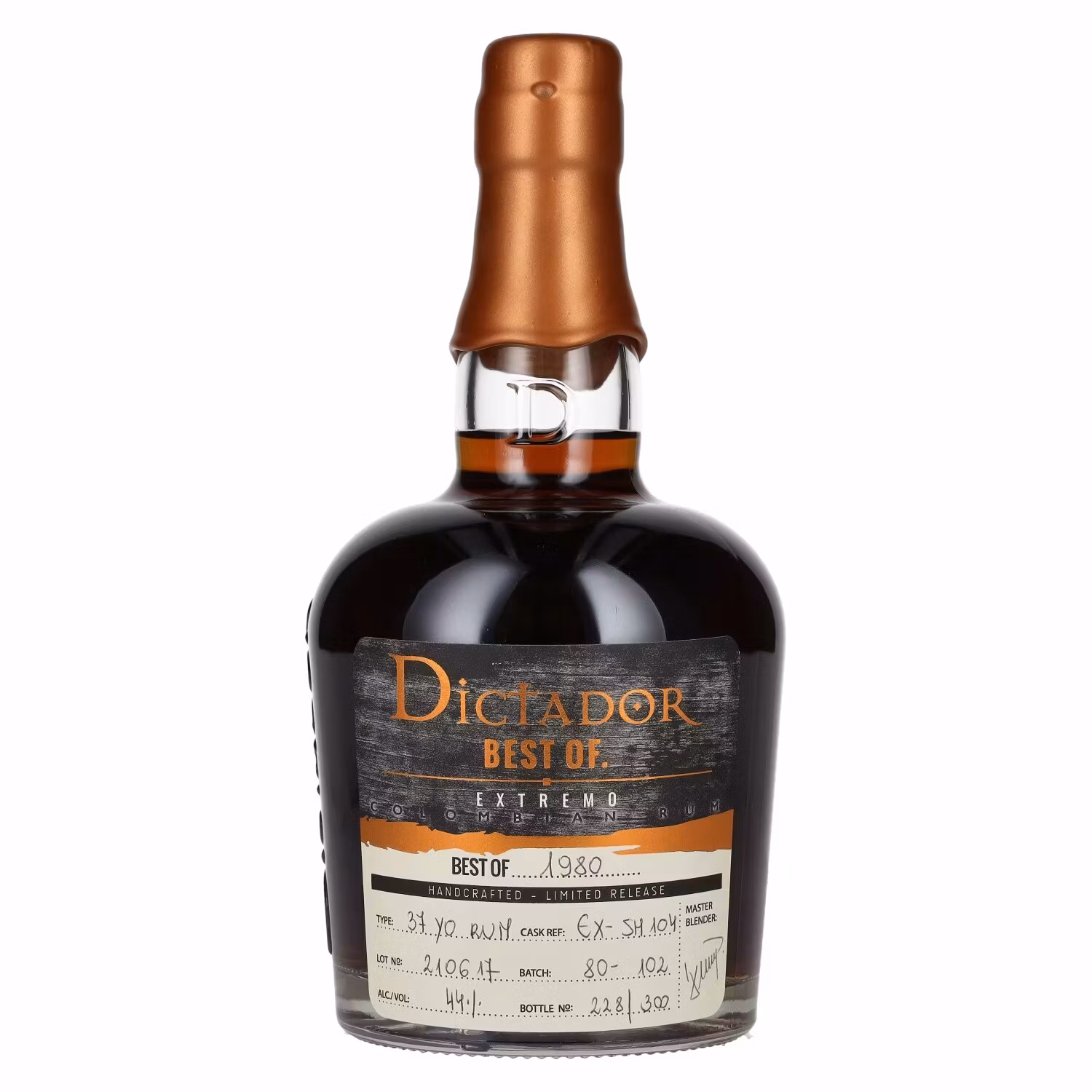 Dictador BEST OF 1980 EXTREMO Rum 37YO/210617/EX-SH104 44% Vol. 0,7l Colombia I lager. Artikelnummer: 606085-X Dela Information Colombia