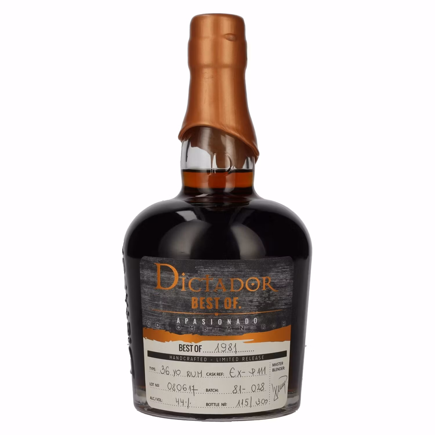 Dictador BEST OF 1981 APASIONADO Colombian Rum EXP-111 44% Vol. 0,7l Colombia I lager. Artikelnummer: 606154-X Dela Information Colombia