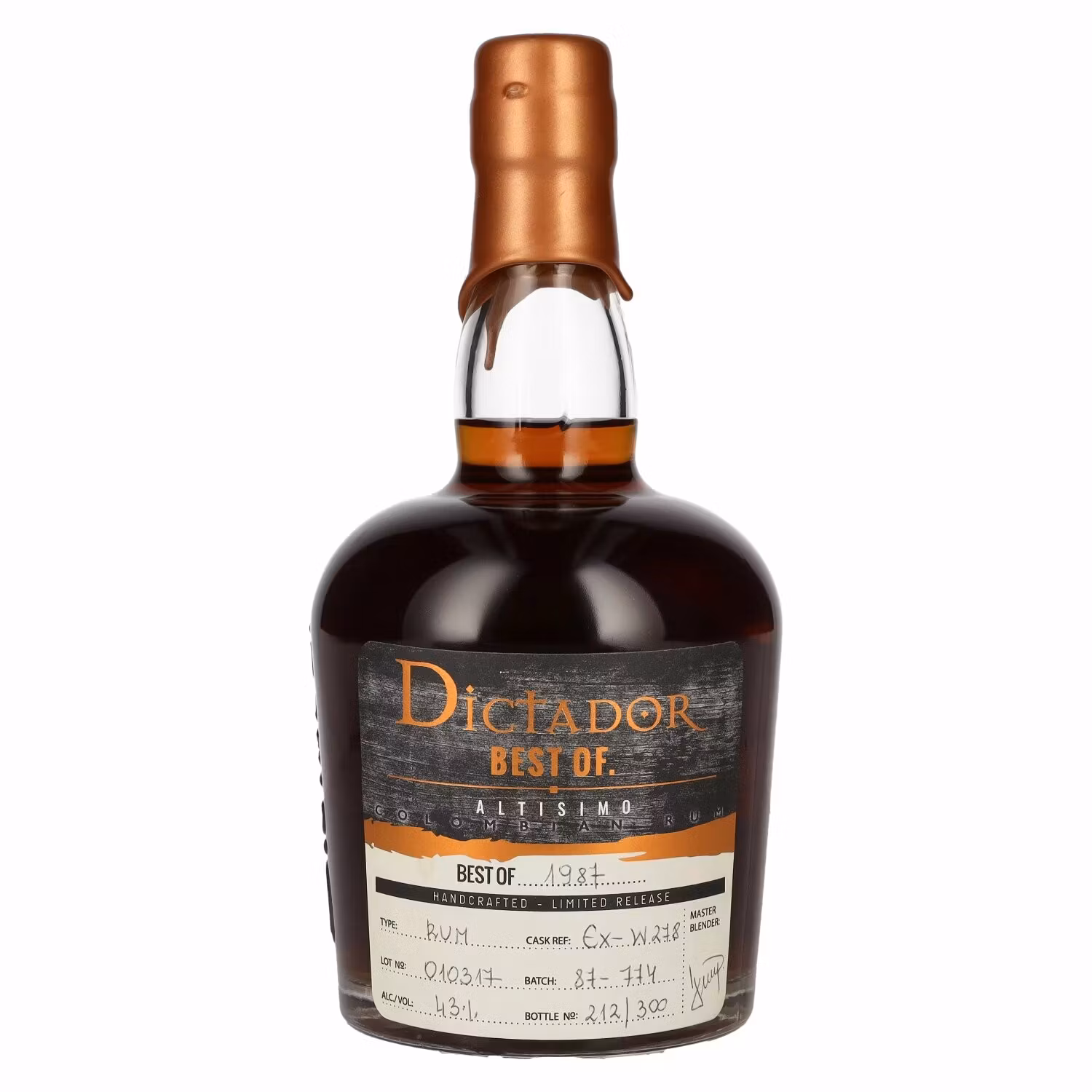 Dictador BEST OF 1987 ALTISIMO Colombian Rum 30YO/010317/EX-W278 43% Vol. 0,7l Colombia I lager. Artikelnummer: 606107-02-X Dela Information Colombia