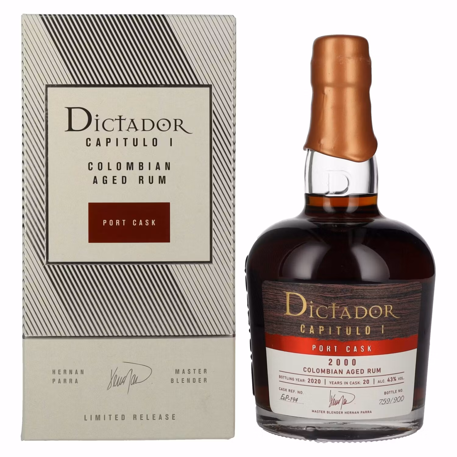 Dictador CAPITULO I 20 Years Old Port Cask Colombian Aged Rum 2000 43% Vol. 0,7l in Giftbox Colombia I lager. Artikelnummer: 606330-X Dela Information Colombia