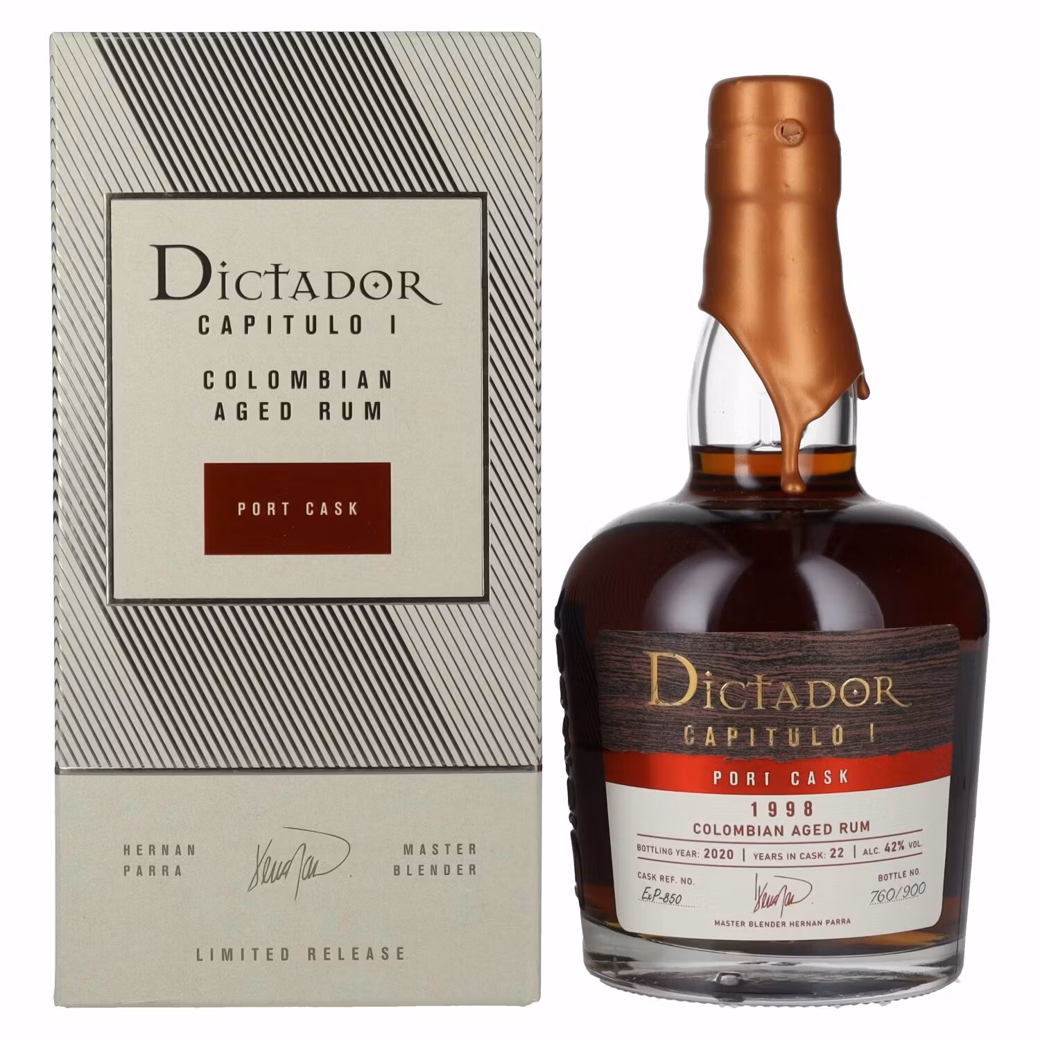 Dictador CAPITULO I 22 Years Old Port Cask Colombian Aged Rum 1998 42% Vol. 0,7l in Giftbox Colombia I lager. Artikelnummer: 606331-X Dela Information Colombia