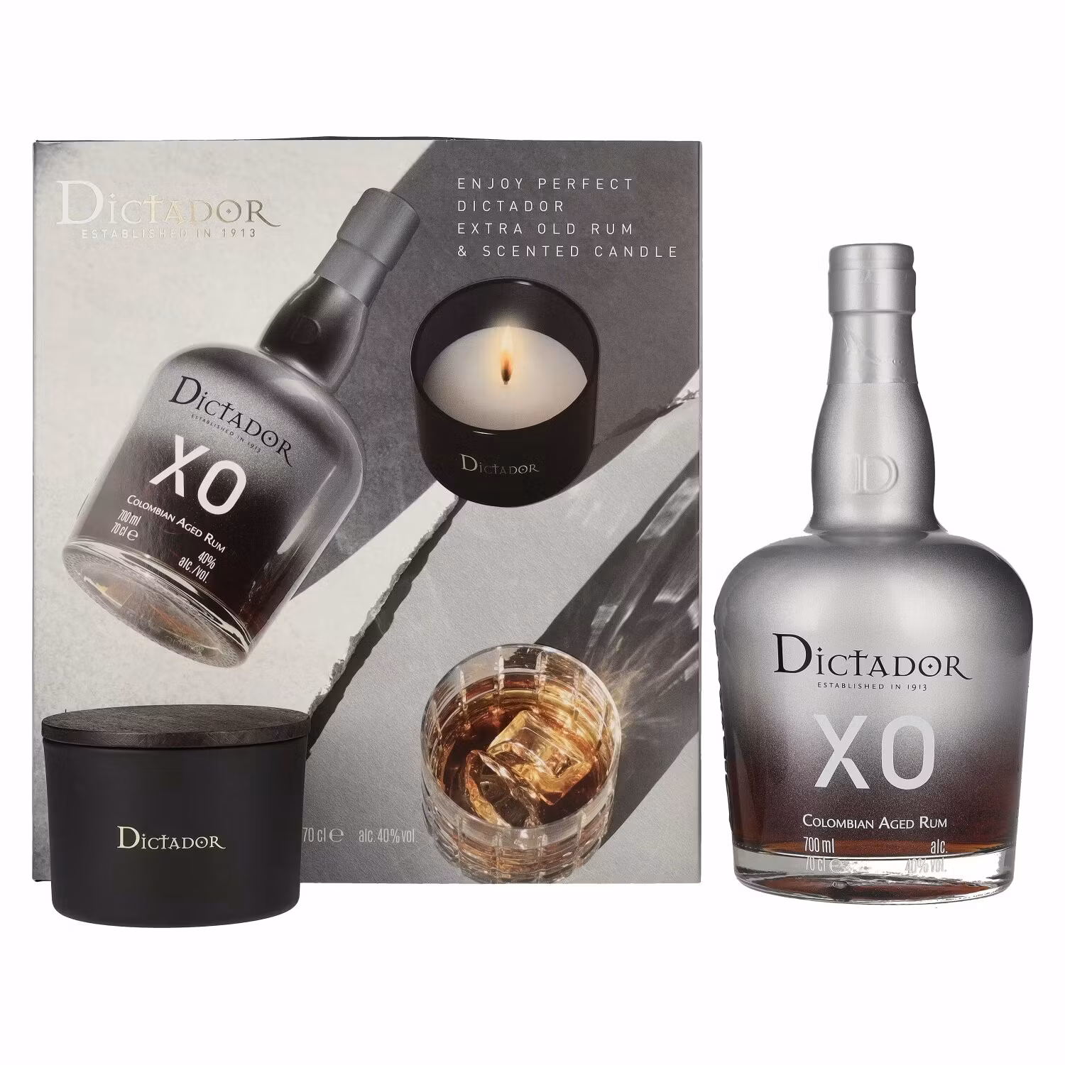 Dictador XO INSOLENT Colombian Aged Rum 40% Vol. 0,7l in Giftbox with Kerze Colombia I lager. Artikelnummer: 606368 Dela Information Colombia