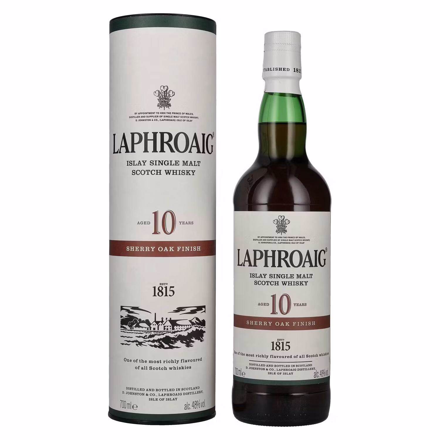 Laphroaig 10 Years Old Sherry Oak Finish 48% Vol. 0,7l in Giftbox Skottland I lager. Artikelnummer: 684403 Dela Information Skottland