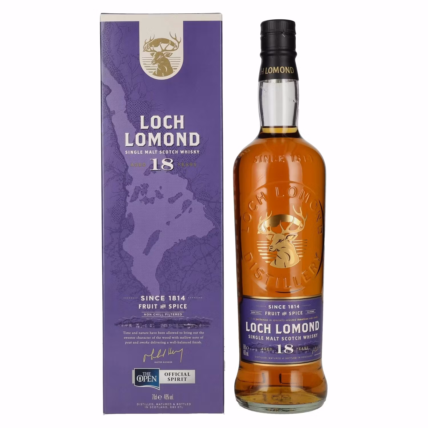 Loch Lomond 18 Years Old Single Malt Fruit and Spice 46% Vol. 0,7l in Giftbox Skottland I lager. Artikelnummer: 670389-02 Dela Information Skottland