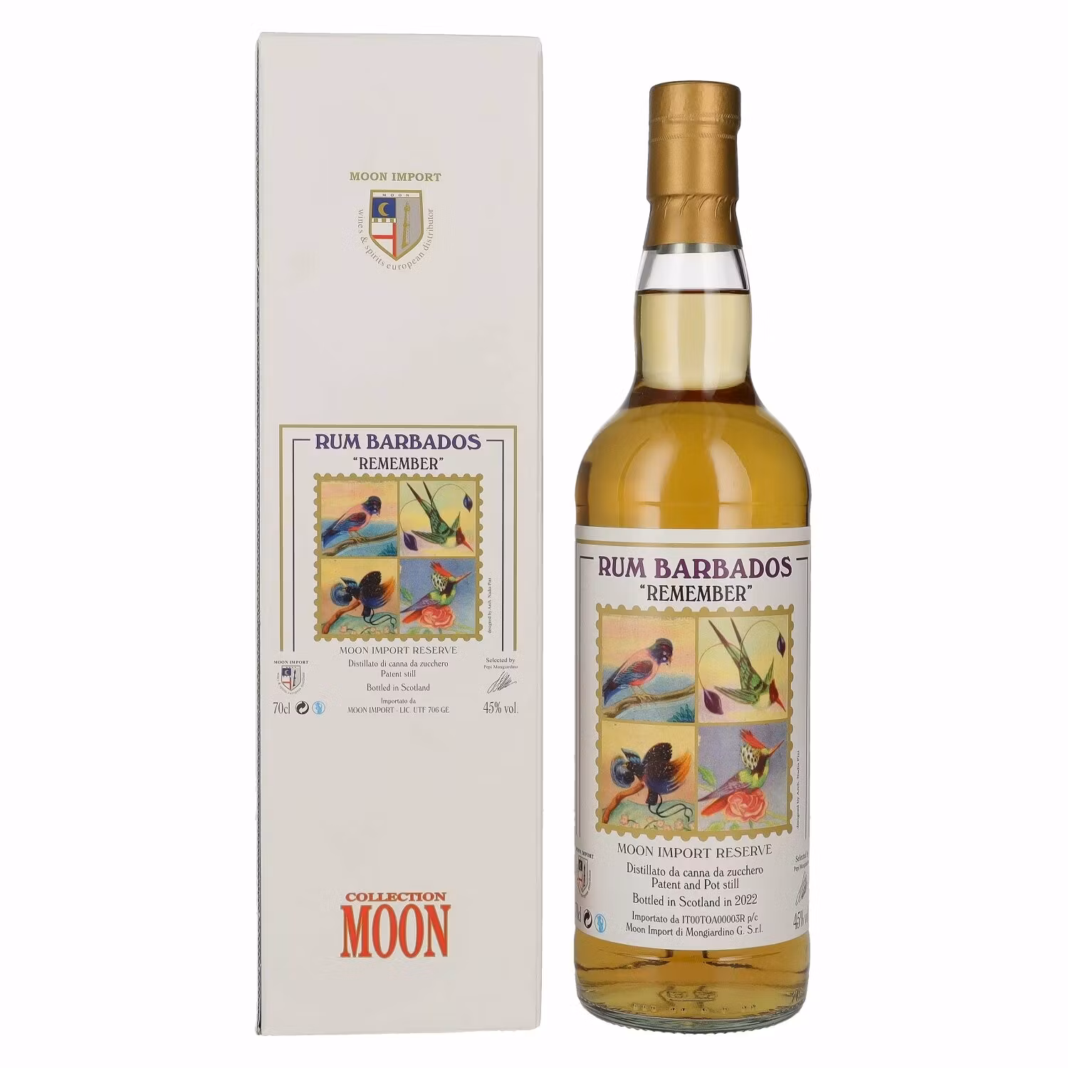 Moon Import Reserve REMEMBER Rum Barbados Patent and Pot Still 2022 45% Vol. 0,7l in Giftbox Barbados I lager. Artikelnummer: 605485 Dela Information Barbados
