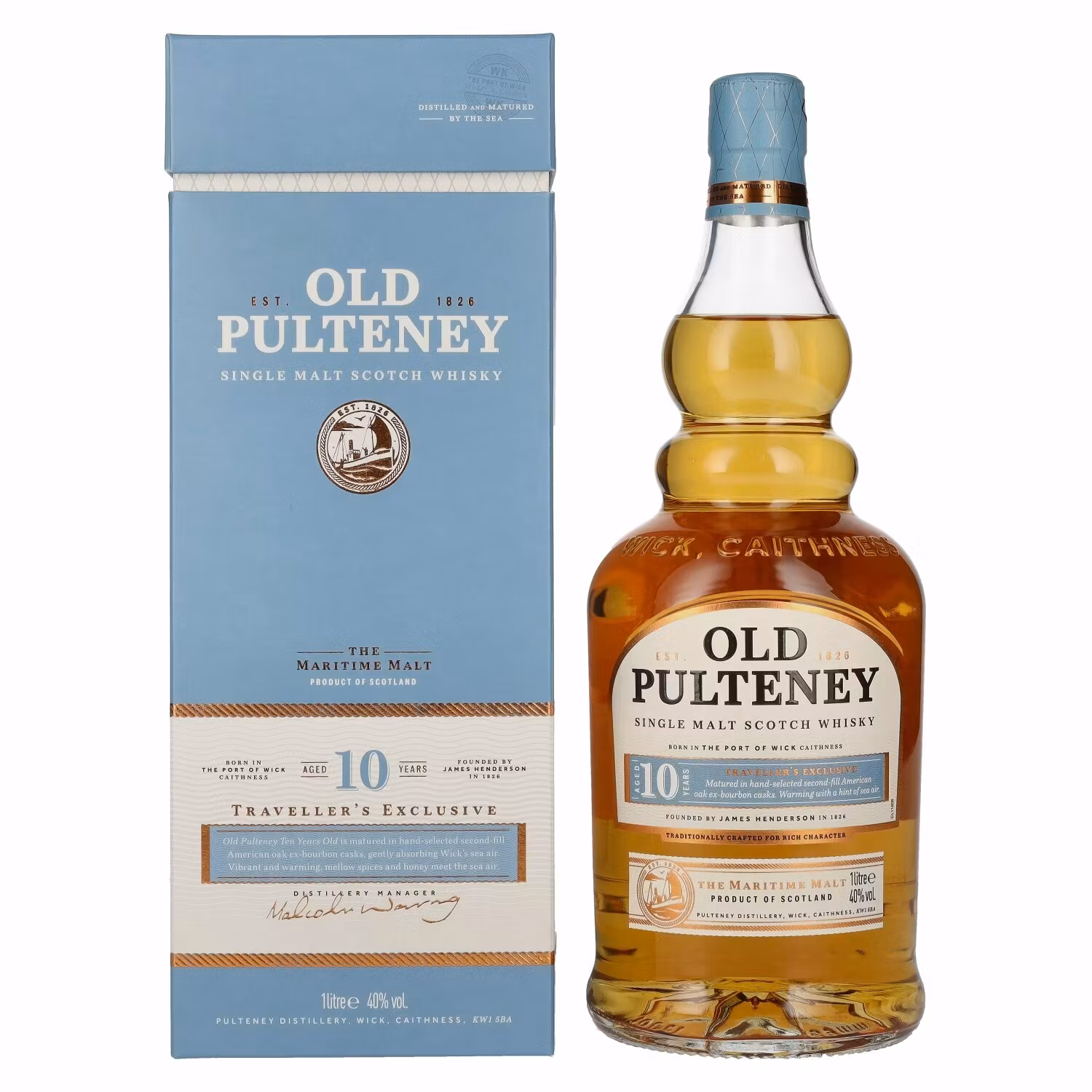 Old Pulteney 10 Years Old Single Malt TRAVELLER'S EXCLUSIVE 40% Vol. 1l in Giftbox Skottland I lager. Artikelnummer: 683822 Dela Information Skottland