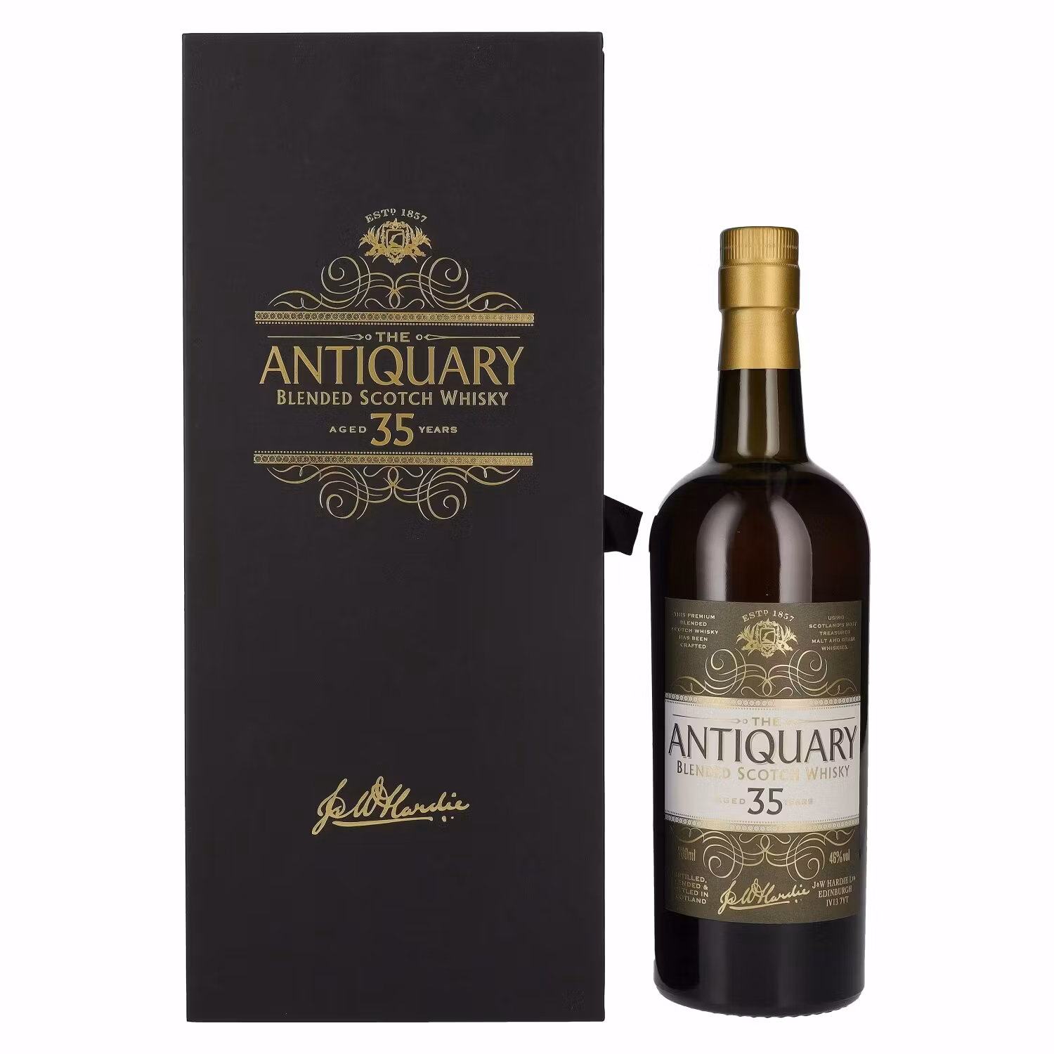 The Antiquary 35 Years Old Blended Scotch Whisky 46% Vol. 0,7l in Giftbox Skottland I lager. Artikelnummer: 680373 Dela Information Skottland