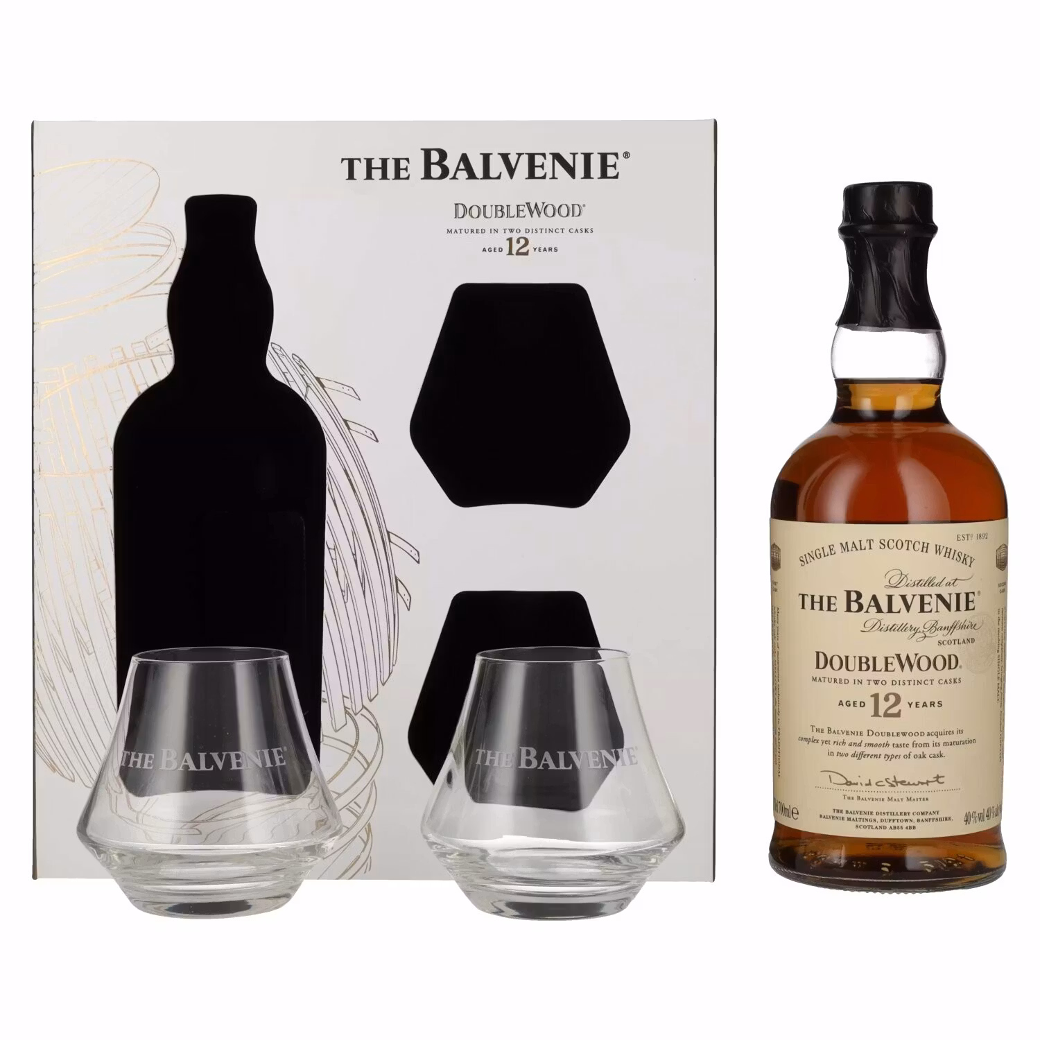 The Balvenie 12 Years Old Double Wood 40% Vol. 0,7l in Giftbox with 2 glasses Skottland I lager. Artikelnummer: 685806 Dela Information Skottland