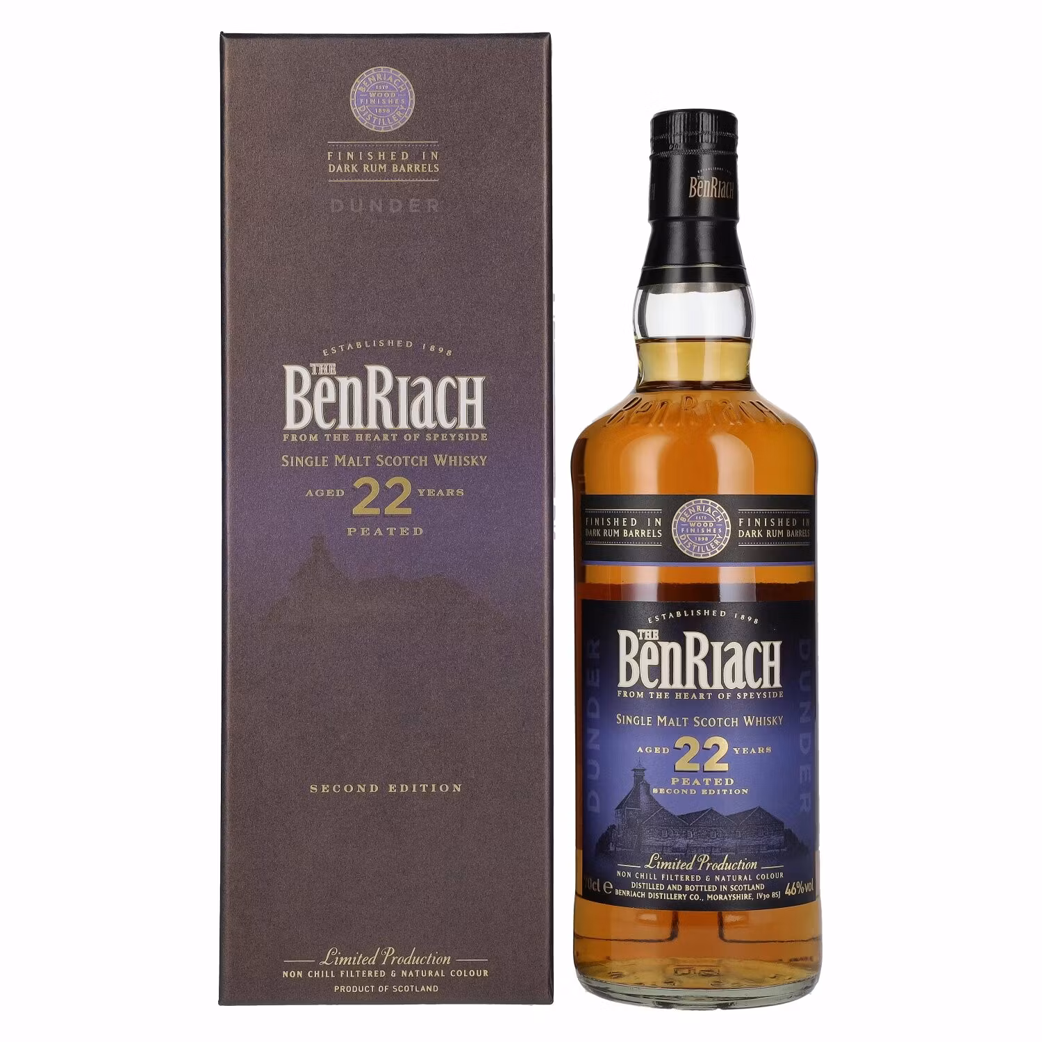 The BenRiach 22 Years Old PEATED Second Edition DUNDER 46% Vol. 0,7l in Giftbox Skottland I lager. Artikelnummer: 685433 Dela Information Skottland