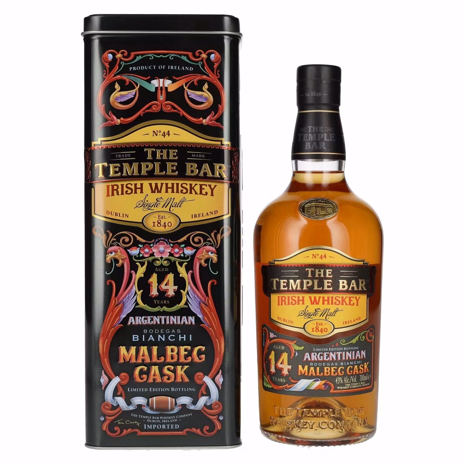 The Temple Bar 14 Years Old Single Malt Irish Whiskey Malbec Cask 43% Vol. 0,7l in Giftbox Irland I lager. Artikelnummer: 670299 Dela Information Irland