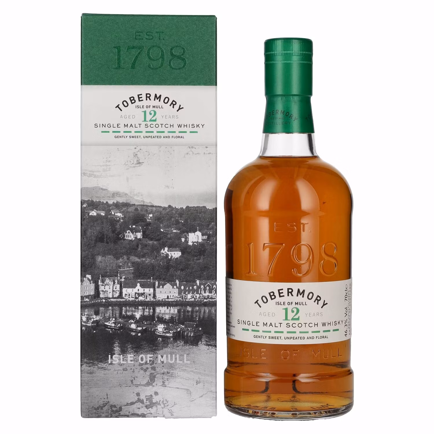 Tobermory 12 Years Old Single Malt Scotch Whisky 46,3% Vol. 0,7l in Giftbox Skottland I lager. Artikelnummer: 683786 Dela Information Skottland